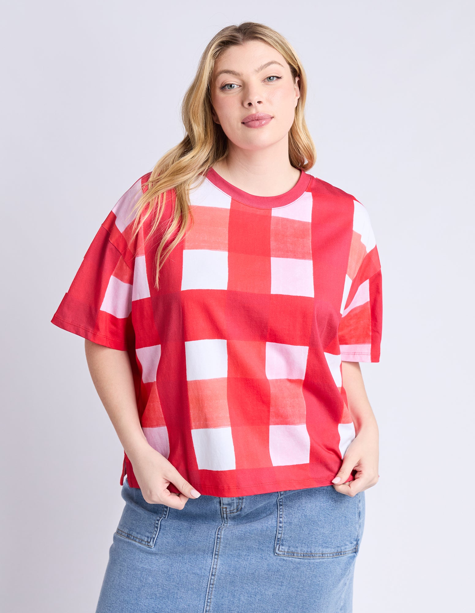 Featuring our exclusive Christmas Poppy Check the Edin Tee bring the fun of the party to any outfit with the colour and comfort of a 100% cotton tee.