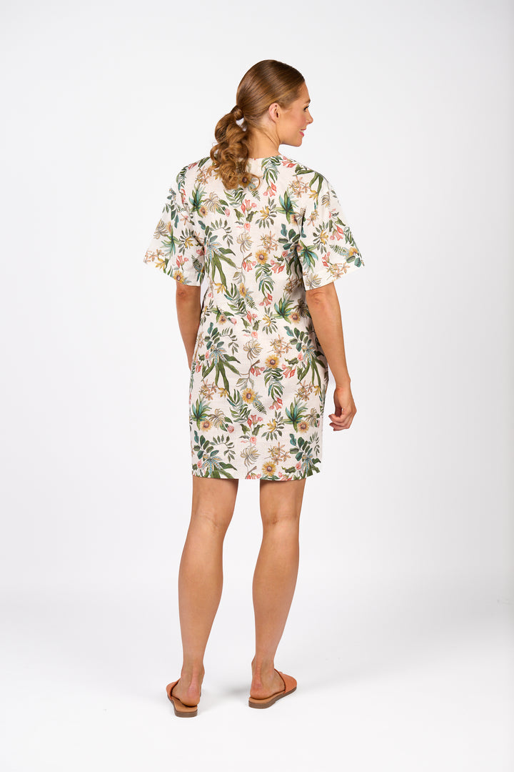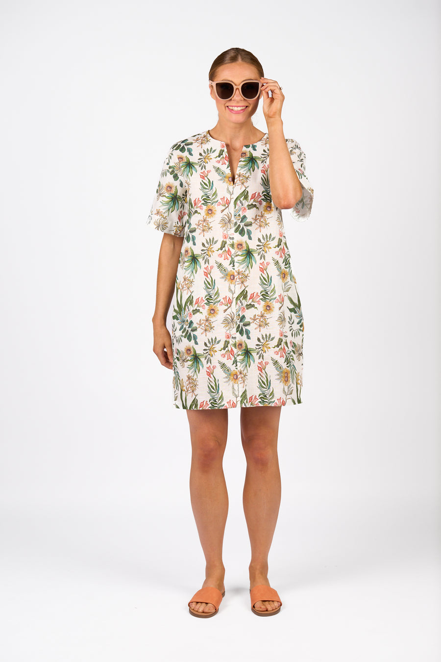 The Knewe Edit Dress in Wild print is the ultimate casual, beachy style — crafted from lightweight cotton with a linen look for a breezy, effortless feel. Designed with a high round neckline with V-slit and short sleeves, this dress offers an easy throw-on silhouette and a relaxed fit — perfect for laid-back summer days. Functional side seam pockets and a centre front seam add practicality and subtle detail to this everyday staple.