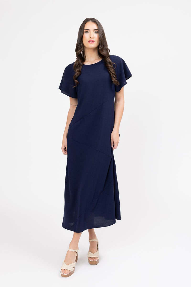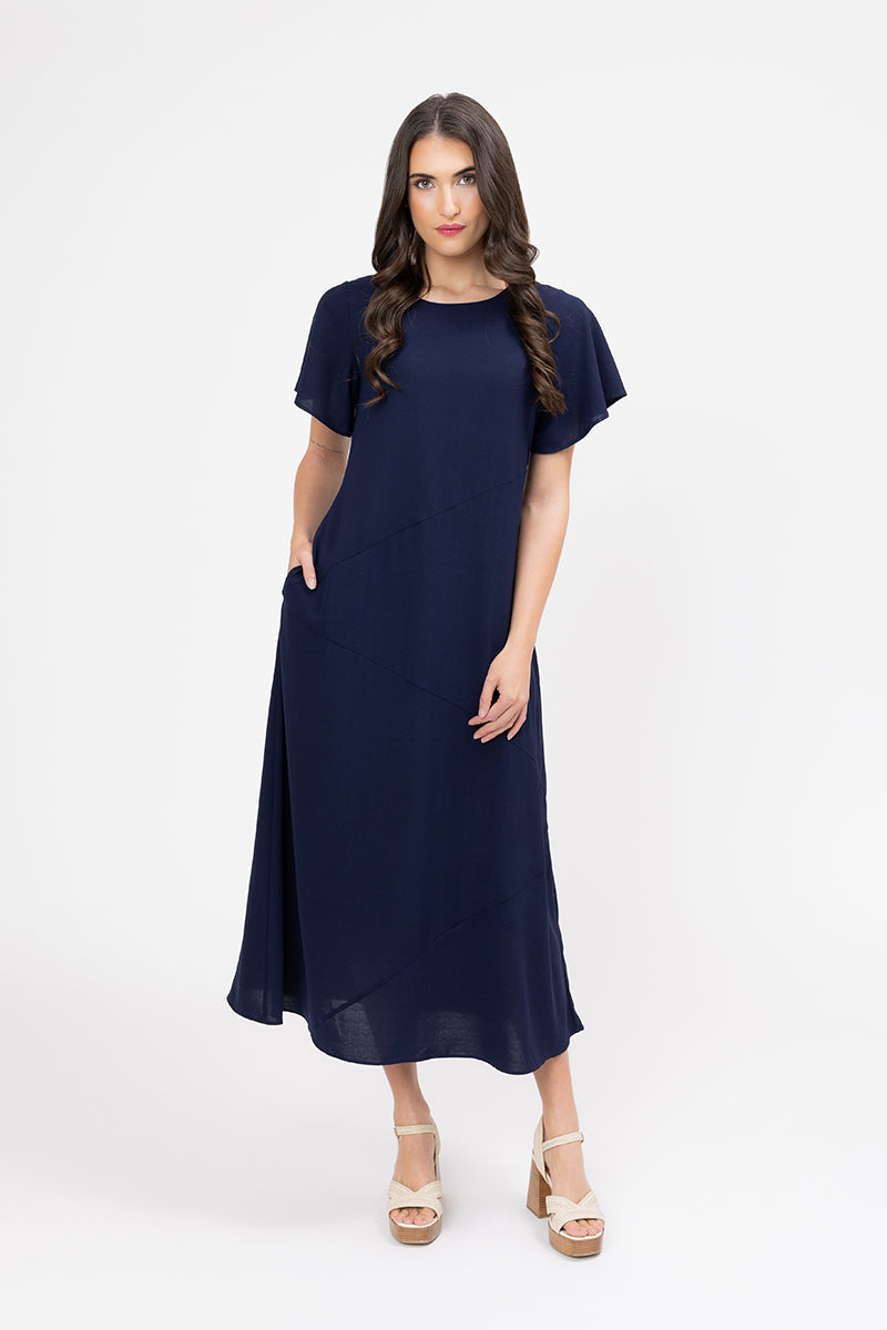 Embrace timeless style with the Seeking Lola Flutter Dress in Navy—a chic and versatile midi dress designed for effortless elegance. Crafted from a lightweight, breathable fabric, it drapes beautifully to create a relaxed yet polished silhouette you’ll love wearing from day to night.