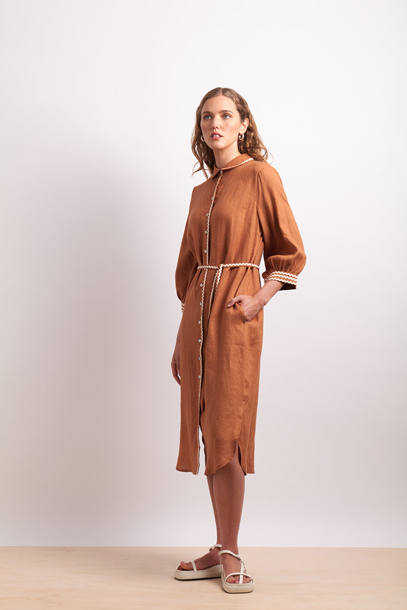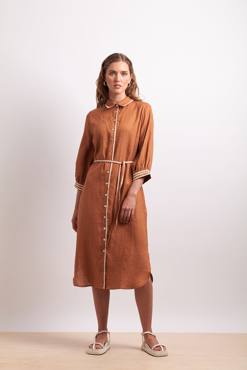 Neris | Ric Rac Shirt Dress - Cinnamon