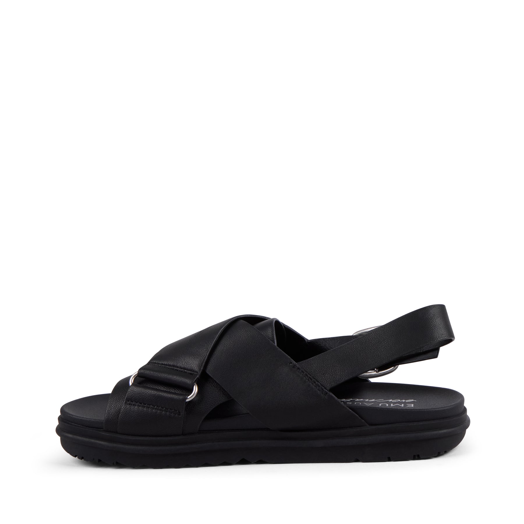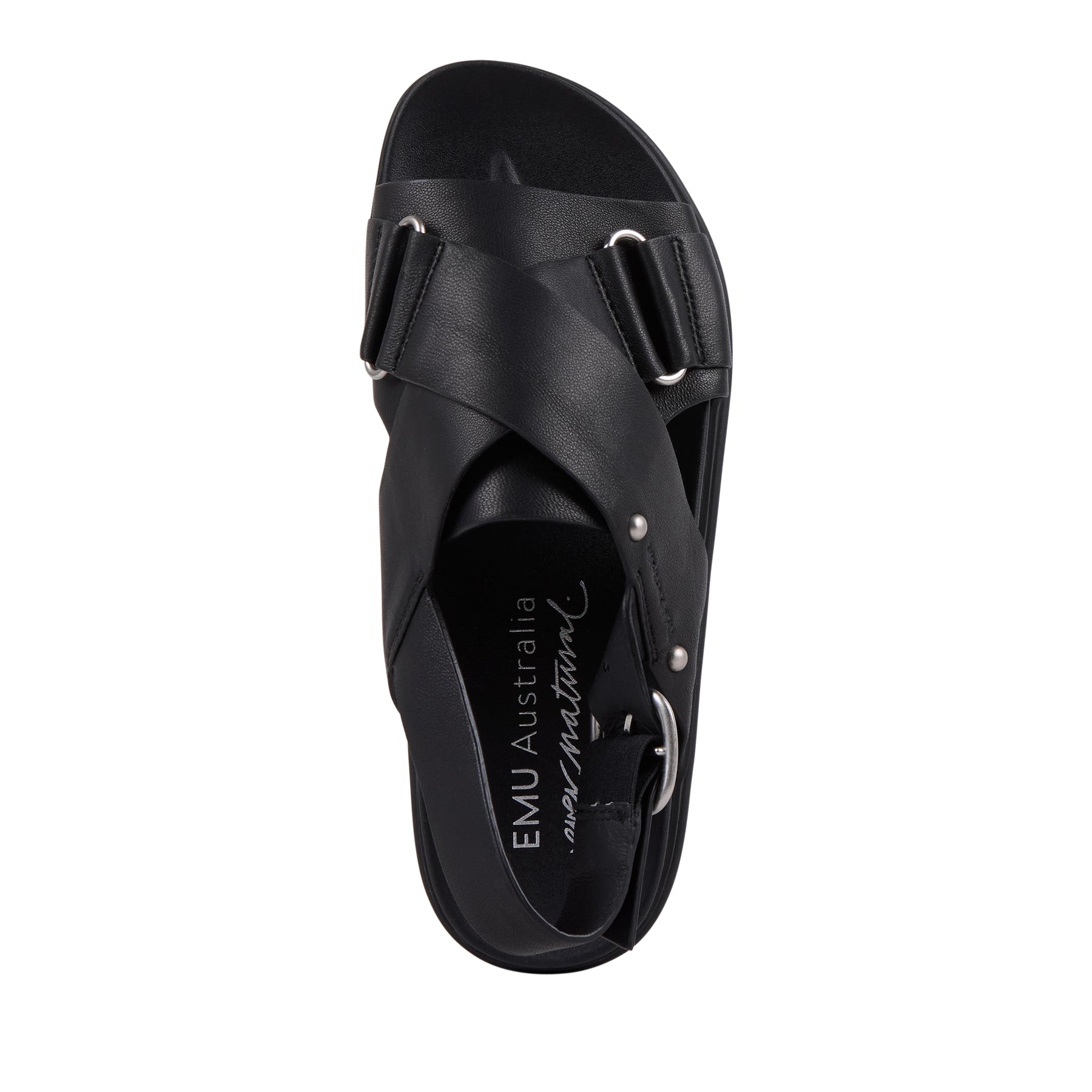 Classic with a twist, this leather crossover sandal features a secure back strap with an adjustable buckle and subtle metal accents for everyday ease.