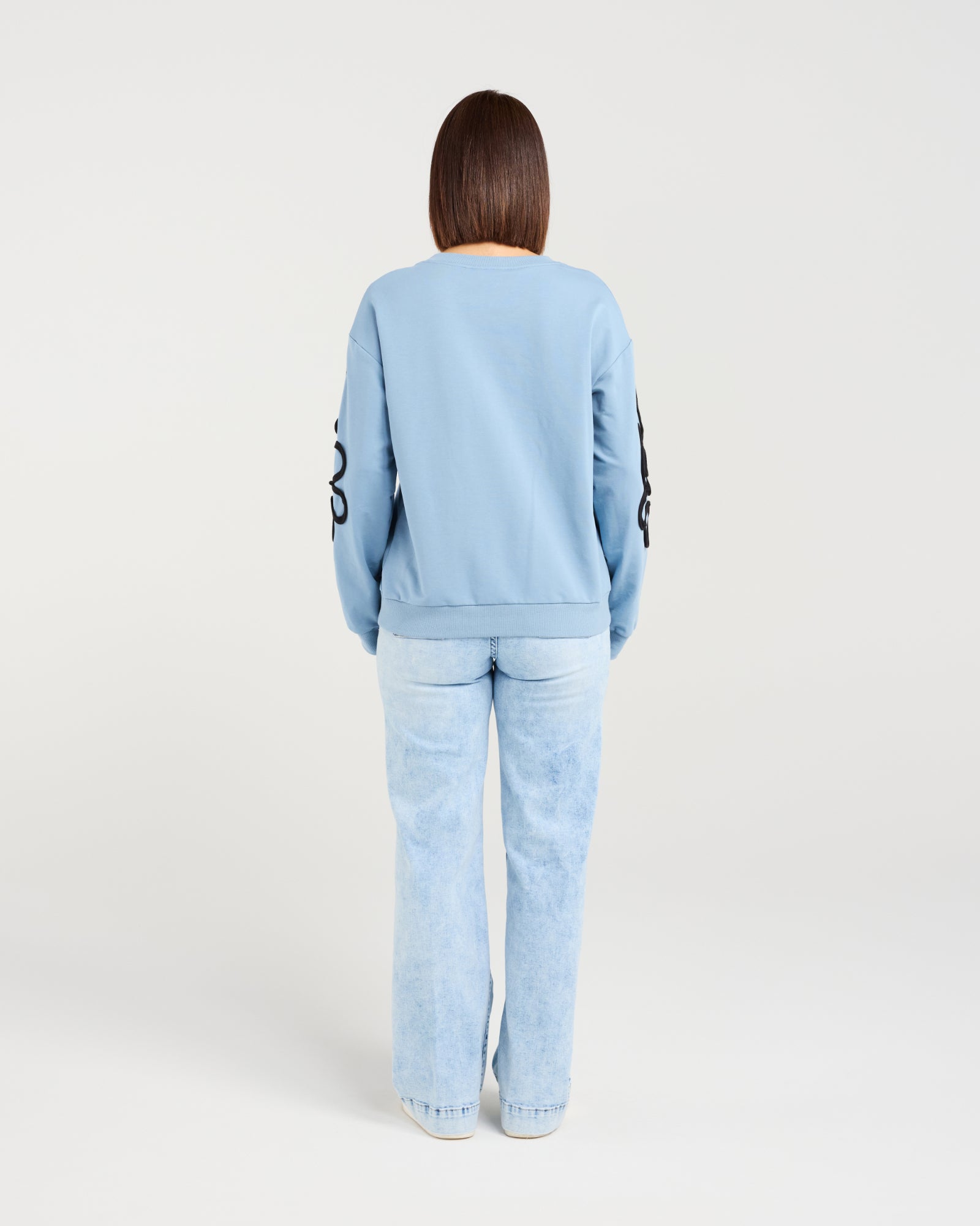 This classic-shaped sweater is elevated with beautifully textured floral appliqués, adding depth and visual interest. Soft and stylish, it transforms a wardrobe staple into a statement piece with subtle sophistication.