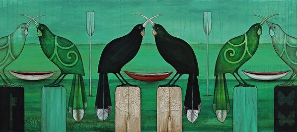 Bought up by an artistic father she was encouraged to explore her natural creative abilities. As a self taught artist she draws her inspiration from pacific landscape, objects and native birds working in acrylics with layers of colour and texture to give the viewer a feel of depth.