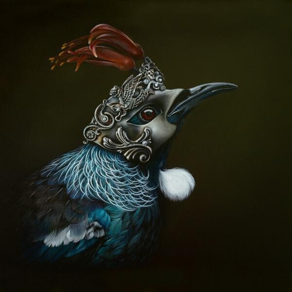 Amplifying the compassion and warmth of these heart-filled creatures, who live in the moment, I verge into portraiture. Placing Tui and Piwakawaka upon pedestals, I admire their wisdom and integrity through stories and legends which have been told. I introduce objects of sentimental value to reflect their importance in an attempt to bring awareness of their fragile existence, an ongoing essence throughout my work.