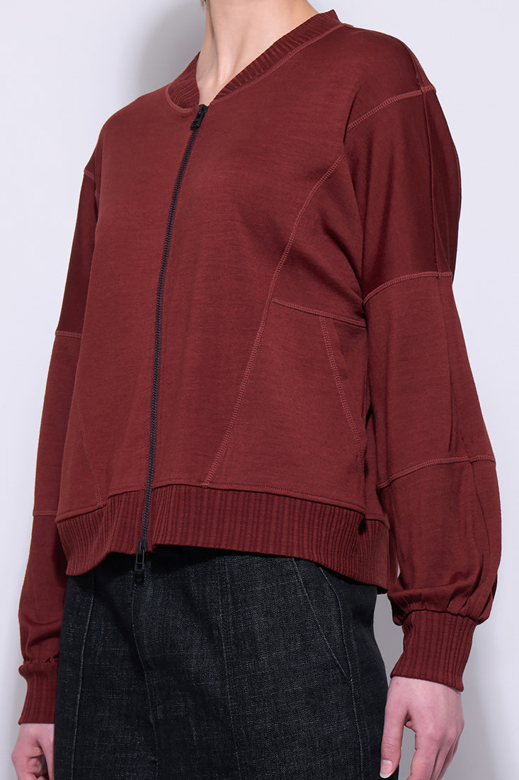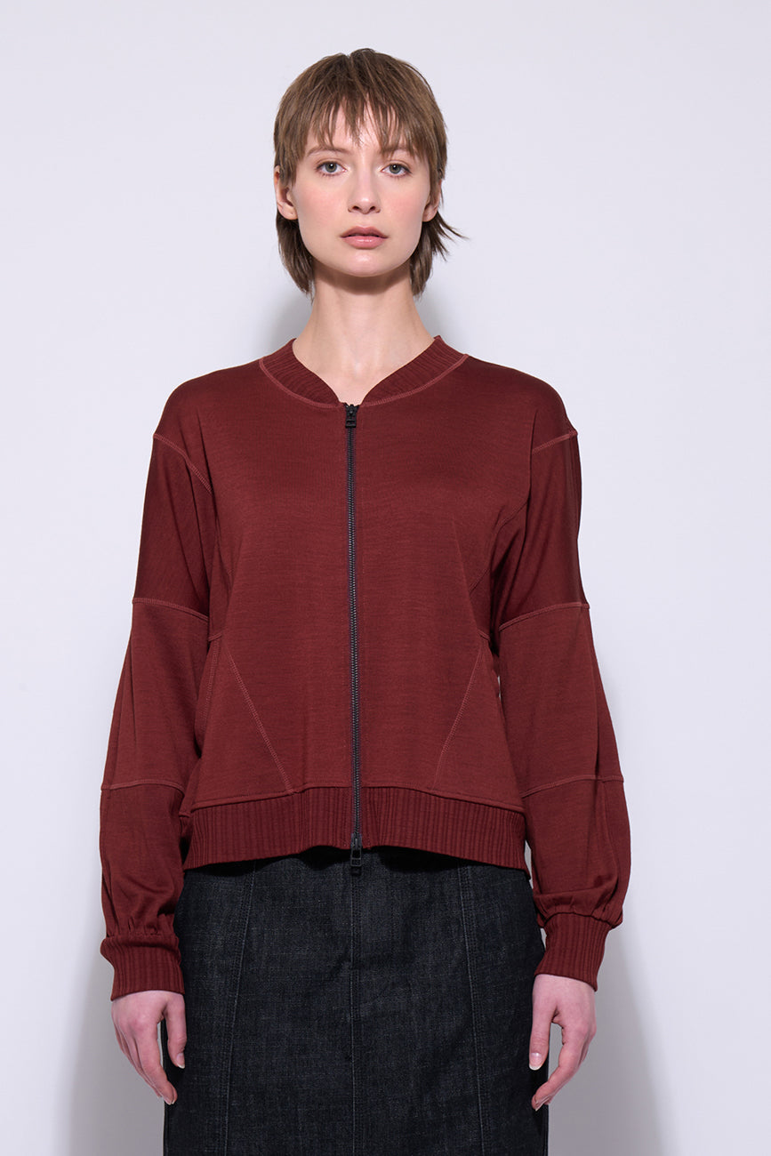 The Flight Plan Merino by Neris is a modern, zip-up top made from 100% Merino wool—offering breathable warmth, softness, and natural stretch. Featuring bold block paneling, a full front zip, ribbed hem, and gathered sleeves with ribbed cuffs, this top combines functional design with refined style.