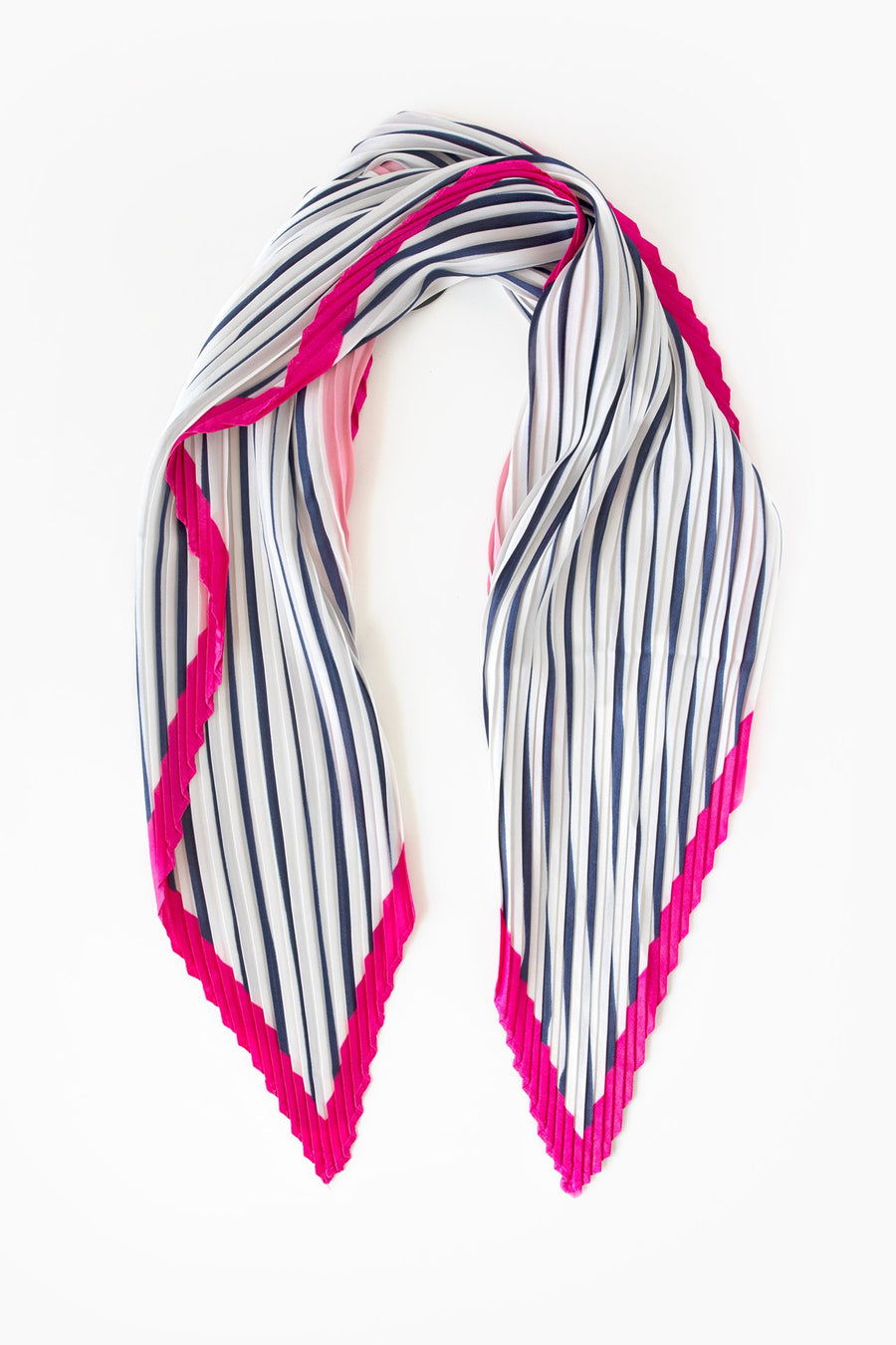 Scarf Pleated Pink & Navy Stripe
