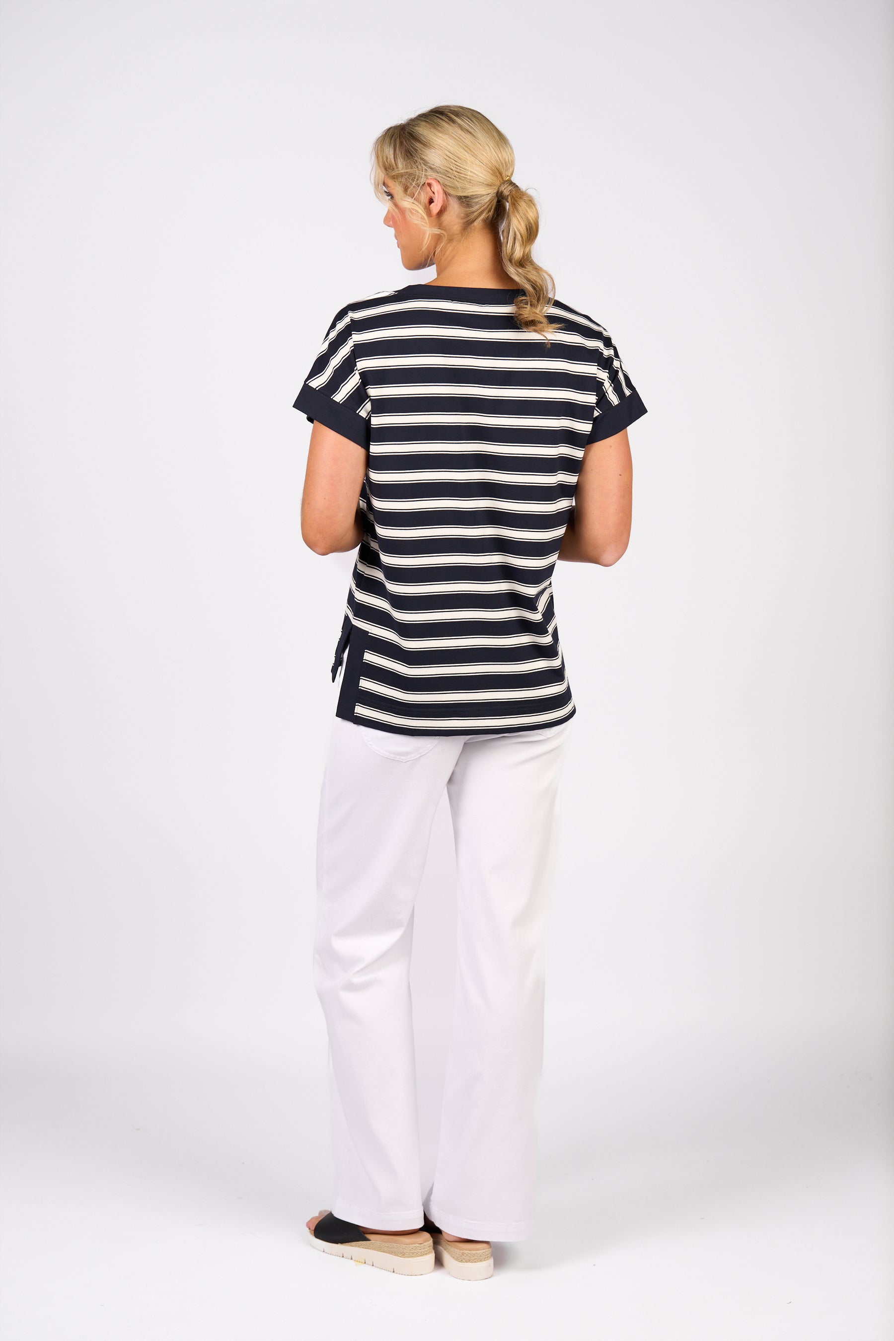 Vassalli | Drop Sleeve Top - Ink Stripe