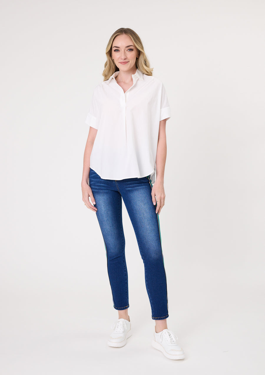Available in crisp white and fresh green, this classic collared shirt offers effortless styling and a timeless look. Made from 100% cotton, it provides breathable comfort all day long.