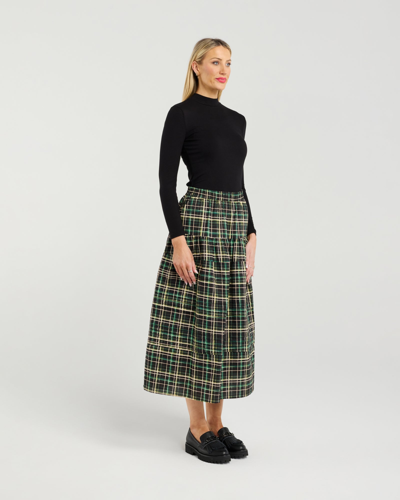 Crafted from 100% cotton, the Seduce Quin Skirt offers a fresh take on classic tartan with its beautifully structured 7/8th length silhouette.