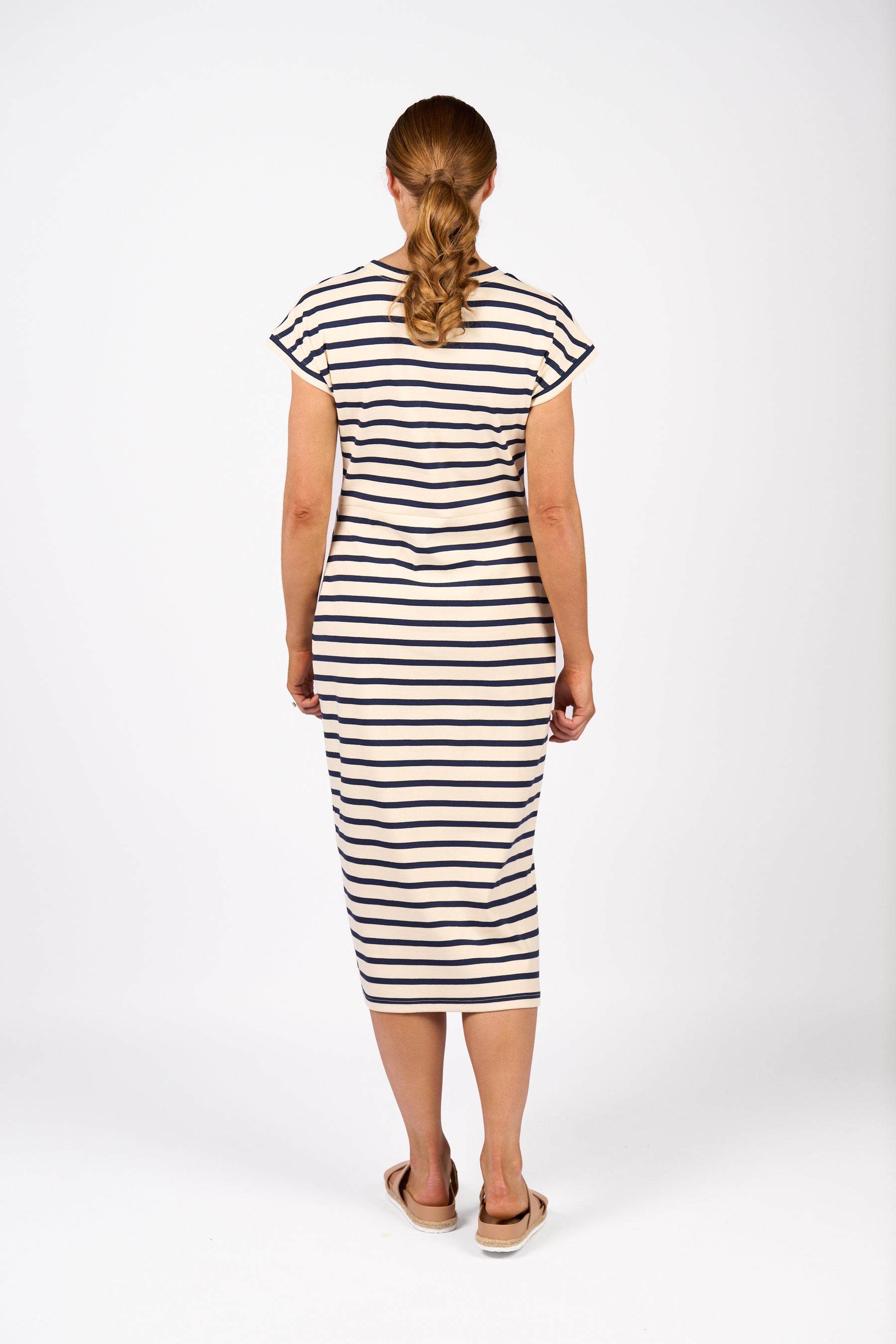 The Parker Dress is a soft stretch cotton knit women’s dress designed for comfort and style. Featuring a relaxed drop shoulder with short sleeves and a twist detail at the waist, it creates a flattering silhouette with a wide fit through the chest and shaped waist and hips. The side front split adds ease of movement, making this dress perfect for relaxed yet polished everyday or casual occasions.